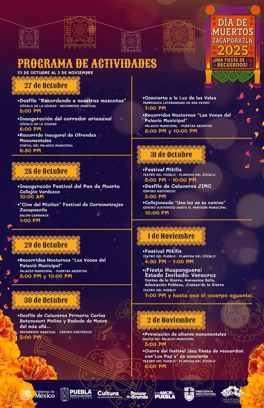 Programa de actividades Día de Muertos Zacapoaxtla 2025 «Una Fiesta de Recuerdos»