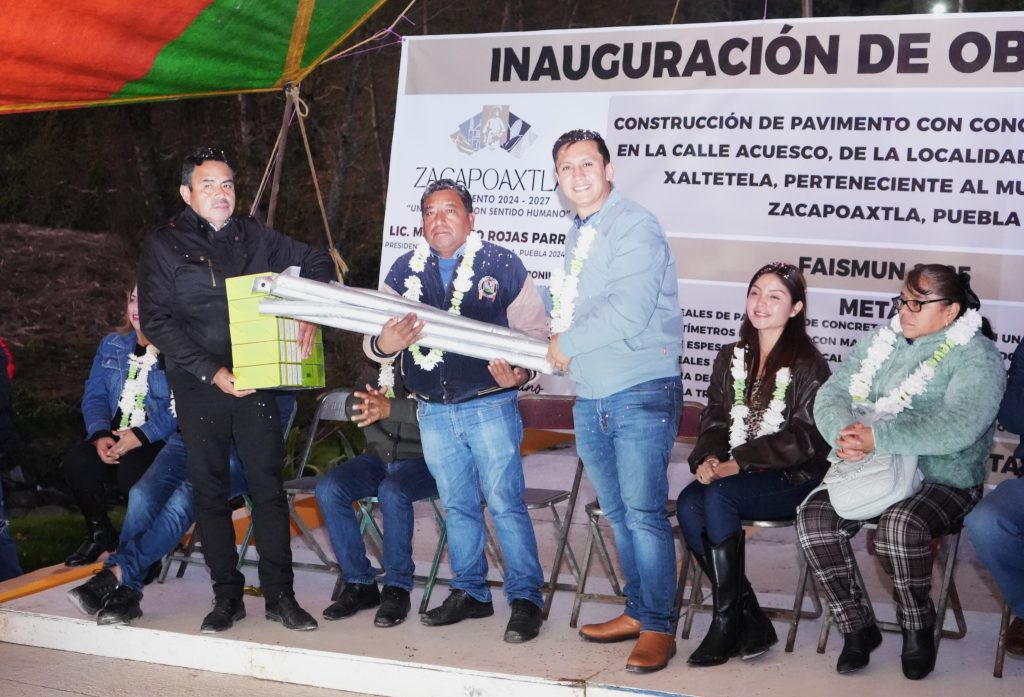 Ernestino Contreras Morales, Juez de Paz de Xaltetela, el Inspector de Acuesco Humberto Salazar Gómez y la Presidenta del Comité Claudia Amador Vega, agradecieron al Presidente por la obra que había sido gestionada desde hace más de 30 años.